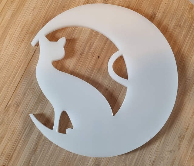 Chat sur la lune en résine époxy de couleur blanc.