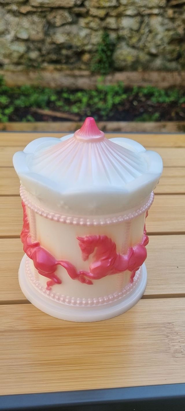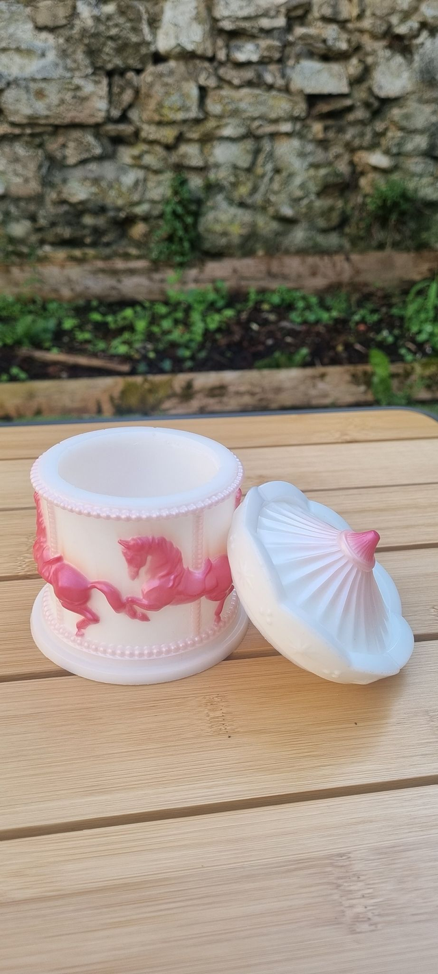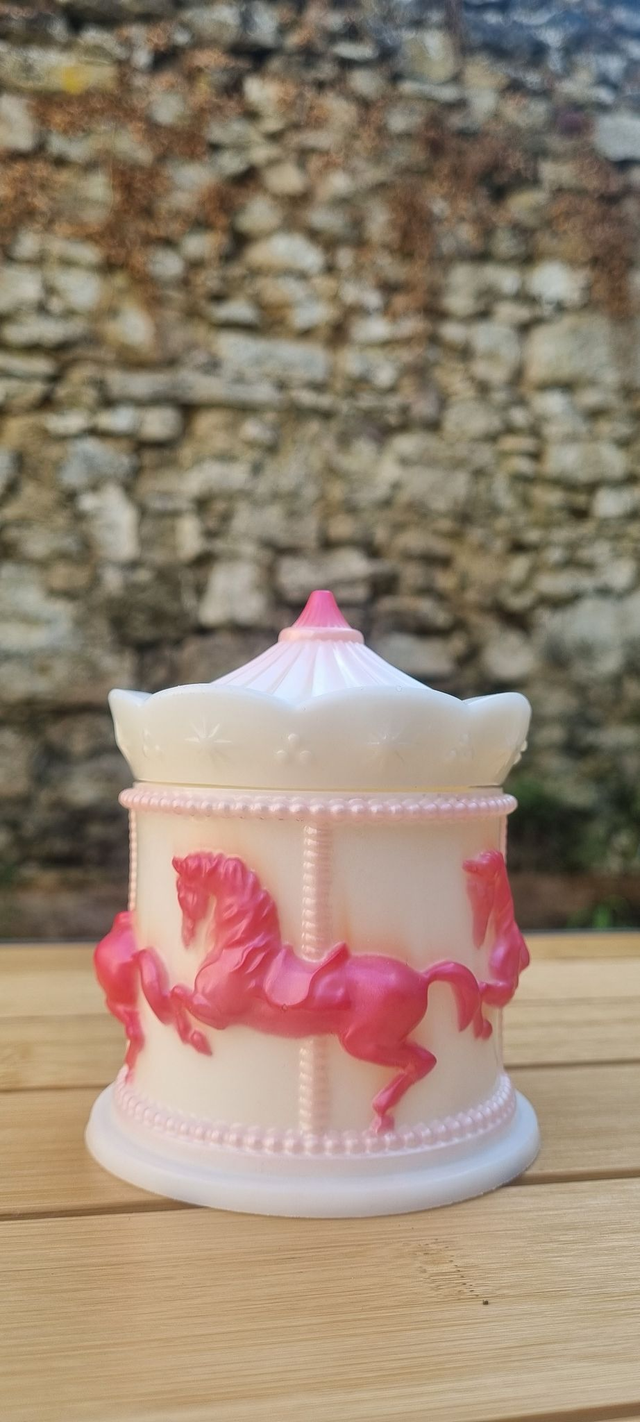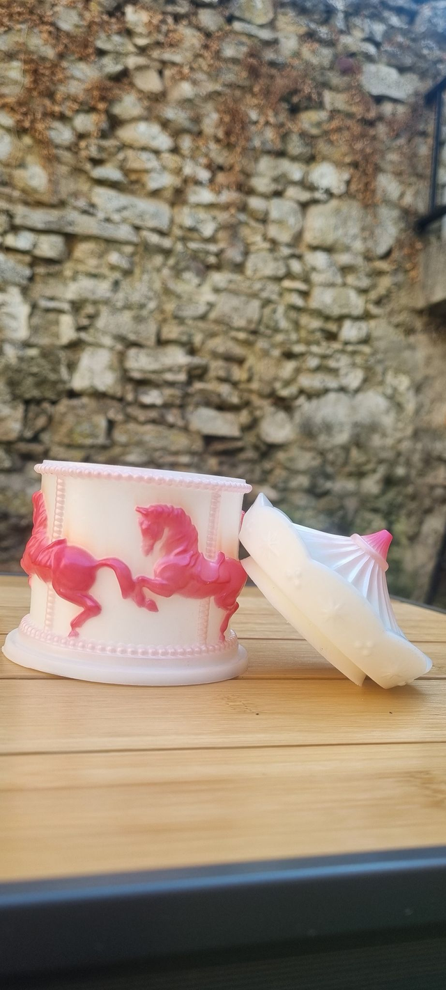 Boite en résine époxy en forme de carrousel, celui-ci est coloré avec du rose foncé et du rose pastel