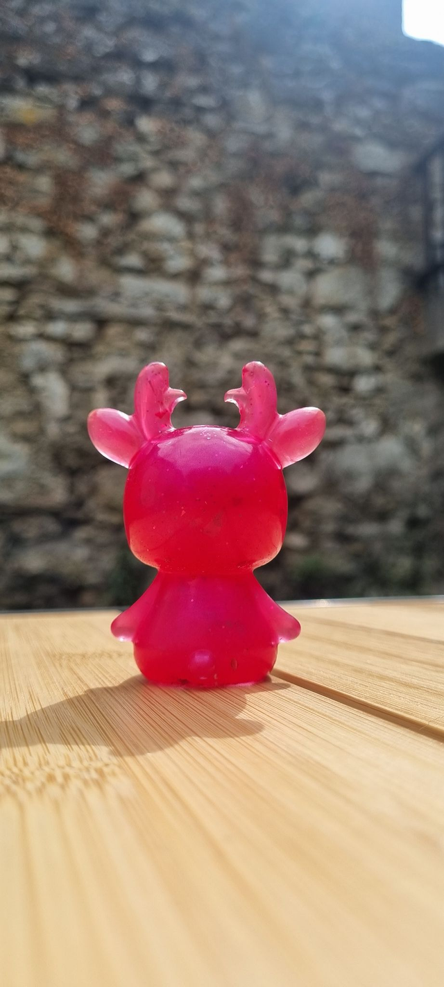 Petit Cerf en résine époxy de couleur rose avec des paillettes.